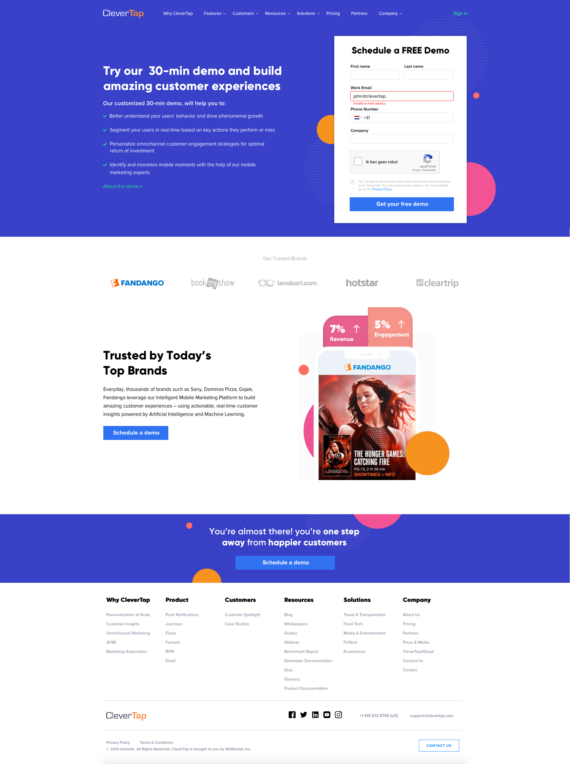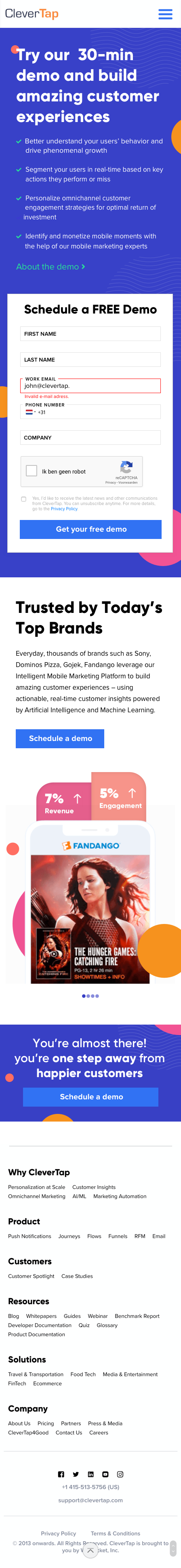While employed at Pünktlich, we designed a digital marketing campaign for mobile marketing platform CleverTap. Unfortunately, the landings page of the Sell-phase banner led to a barren page with just a form. Therefore we made a redesign of their landing page in order to increase conversion.